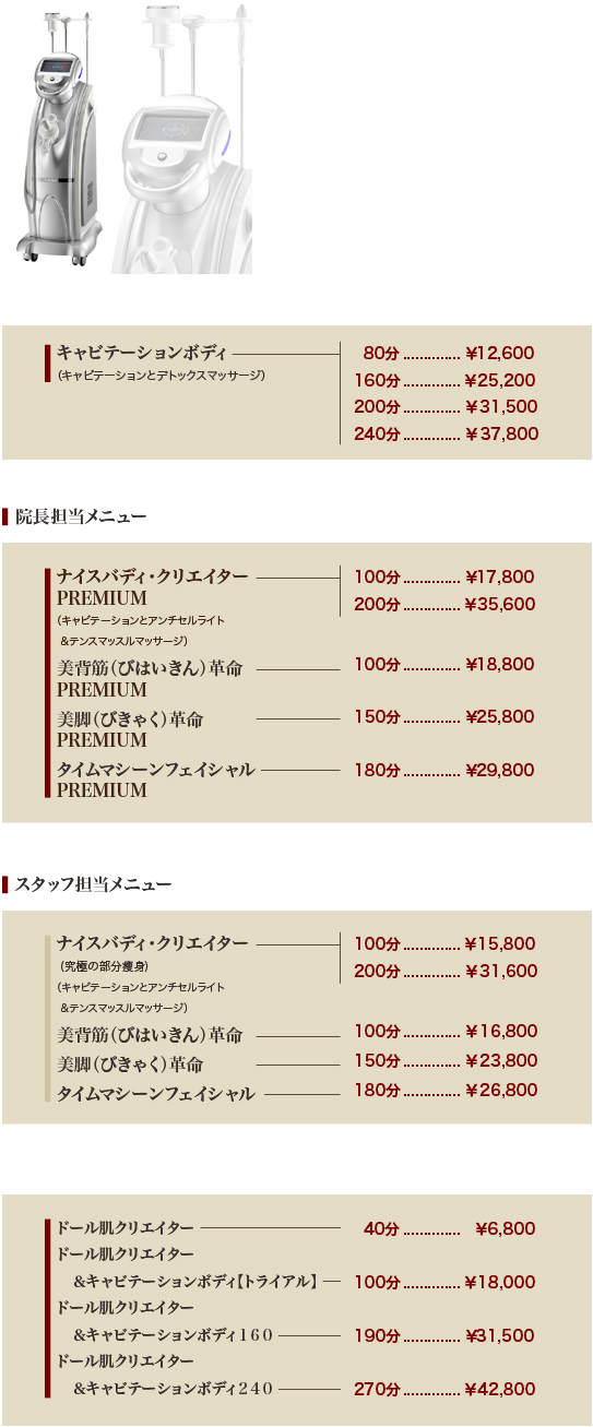 キャビテーションとラジオ波、LED、吸引の機能を合わせ持った理想のボディを作り出す最強のキャビテーションマシーンです。